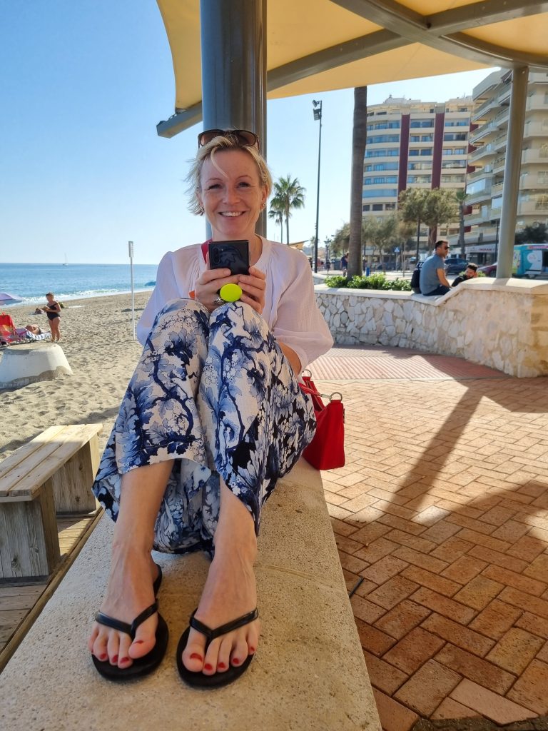 Solen sken och från havet blåste en skön och sval vind. Ett härligt promenadväder! Jag, min tok, hade Flipflops i stället för “vettiga” skor så när vi kom fram till köpcentret kändes fötterna som pannkakor… Vi tassade runt och kollade in butikerna. Det snurrade en massa folk i butikerna, fredagen lockade tydligen spanjorerna till allmänt shoppingvimmel!