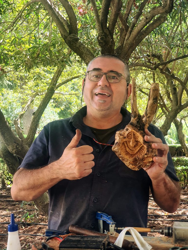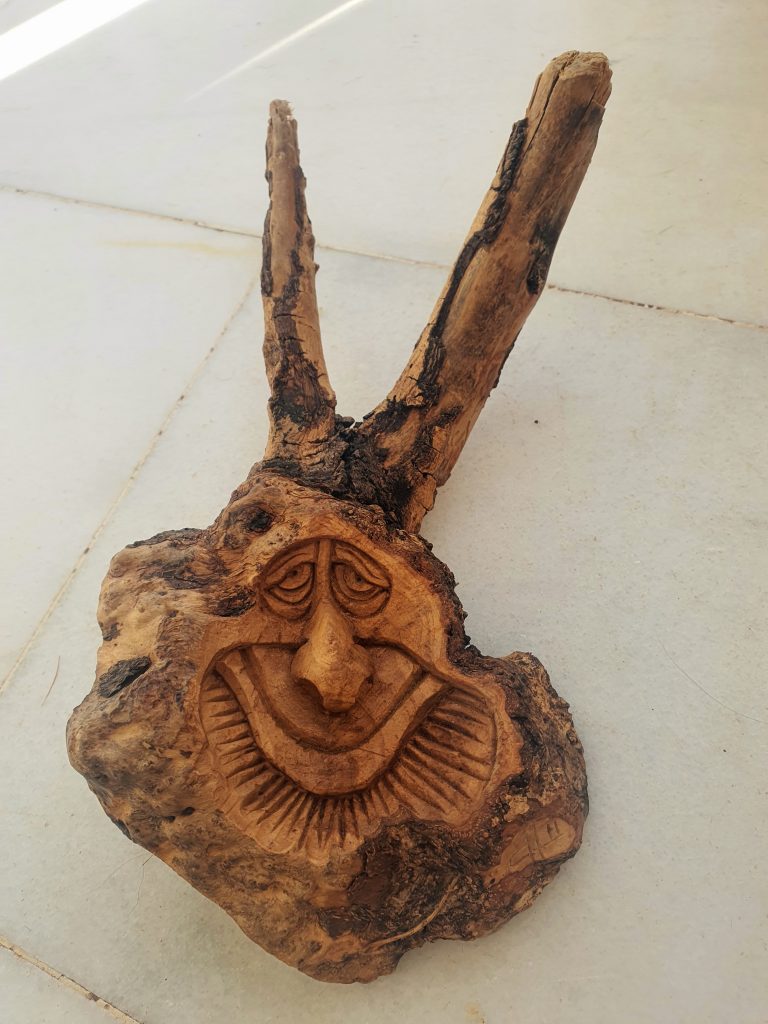 Vi fotograferade en hel massa, naturligtvis, och hittade ett härligt stånd där en man sålde sina trägubbar karvade ur olivträdrrötter. “Följ mig på Instagram”, sa han och stämplade sin adress på papperspåsen. “Jag har mer än 1000 objekt utlagda där”. Sedan placerade han “trägubben” på buxbomshäcken och tog ett hastigt foto innan han stoppade in den i papperspåsen. Det förefaller som om jag har en grej för träiga gubbar; först Buddha och nu den här… Philip är inte träig!).