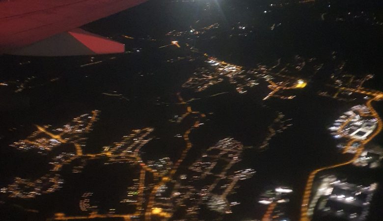 Äntligen framme! Resan gick smidigt; stjärnklart väder och med de nya trådlösa hörlurarna hölls trycket någotsånär i öronen (en gång blev det riktigt illa, men det gick som tur fort över). Varsin liten piccolo prosecco, två filmer på plattan och lite musik fick flygtiden att kännas kort. Och bagaget fick vi bland de första, så …